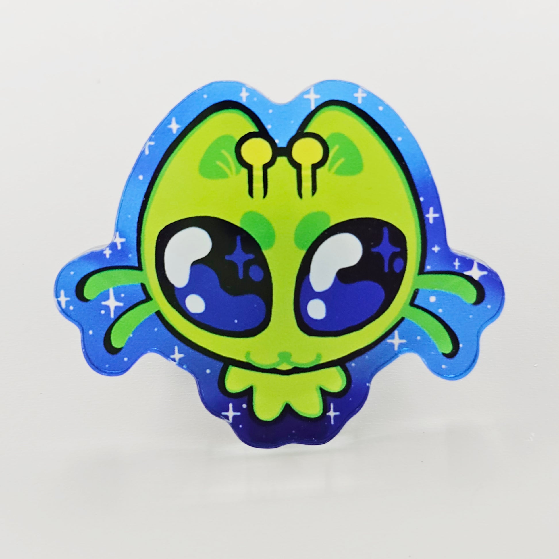 This is a small 1.5in acrylic pin of a alien kitty. The space background is transparent!