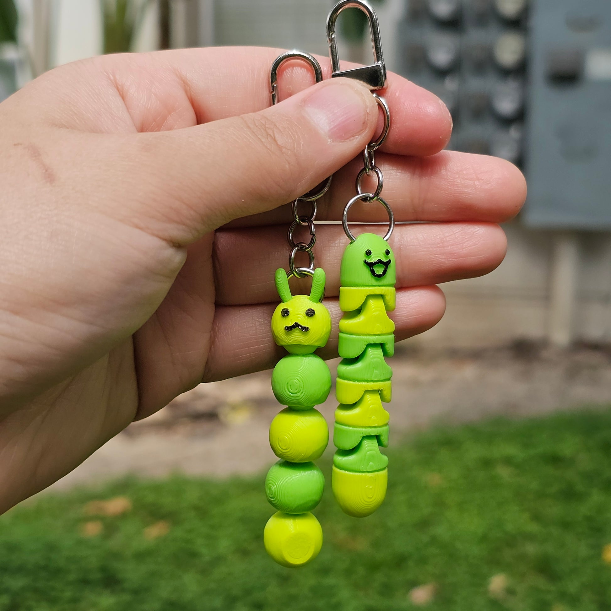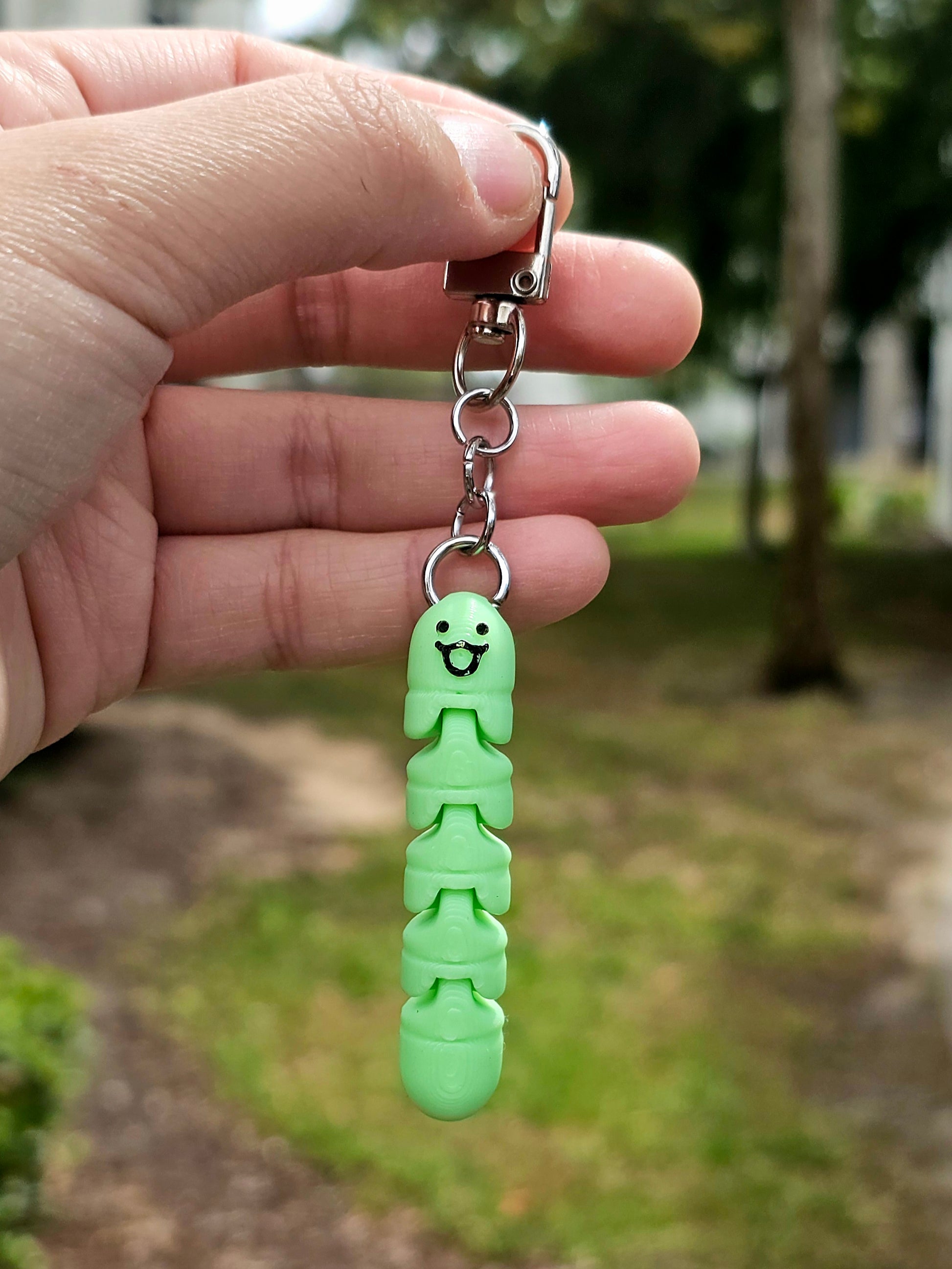 This funny guy is a 3D print wiggly worm keychain! It has articulated joints, letting it wiggle and jiggle as you walk.