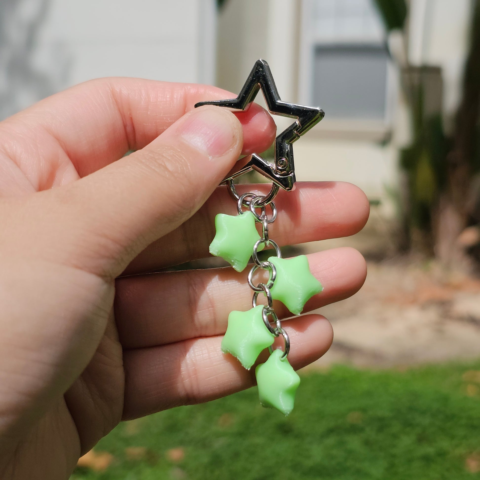 This is a cute dangly star charm with glow in the dark 3D printed stars! If you like keychains that make noise as you walk, this is sure to add a different sound to your step. The stars are sanded smooth, making them nice to fidget it. It has been tested for durability and can withstand pulling and tugging!